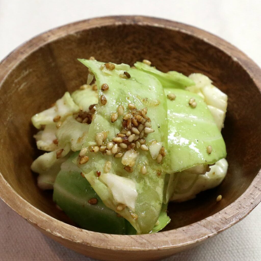 手でちぎった春キャベツに、老舗こだわりの有機ごまの香ばしさと程よい塩気が絡んで、お箸が止まらない美味しさですよ。今しか味わえない春の味、ぜひ食卓で楽しんでくださいね。